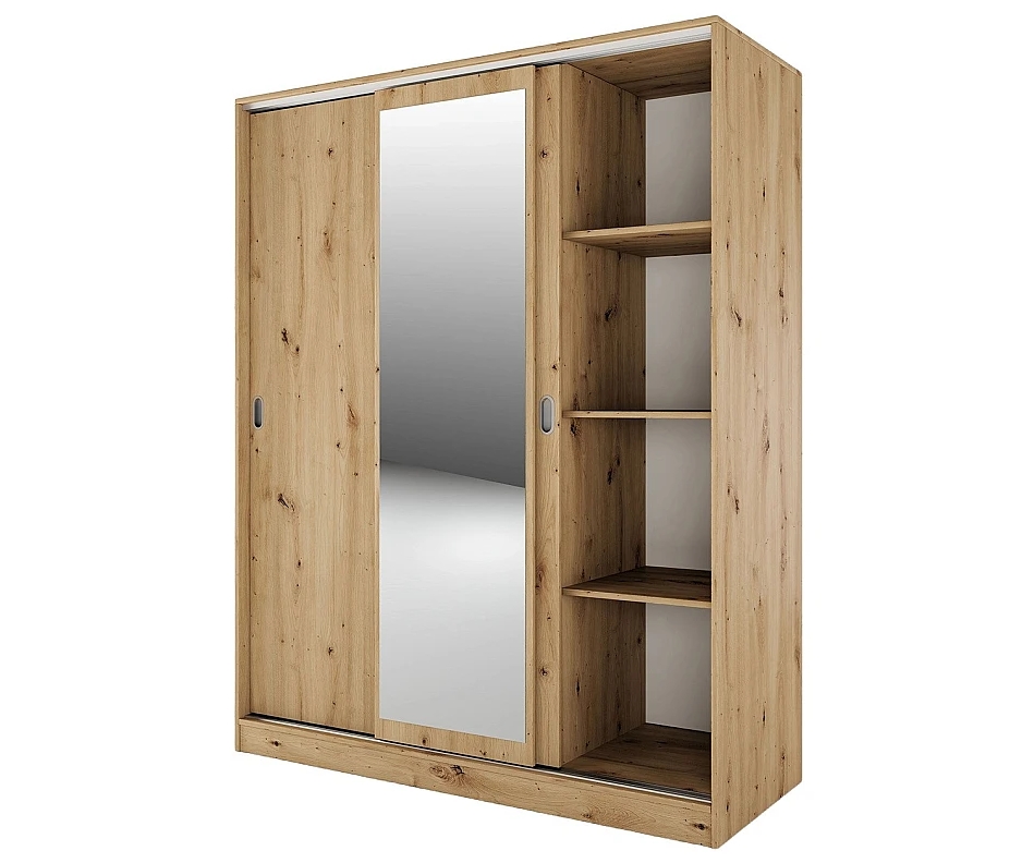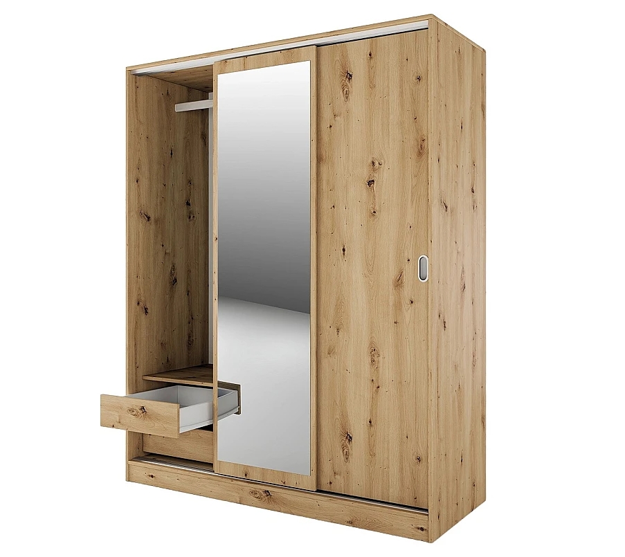 Гардероб с плъзгащи врати, огледало и вътрешни чекмеджета СИТИ 1006 – дъб артисан