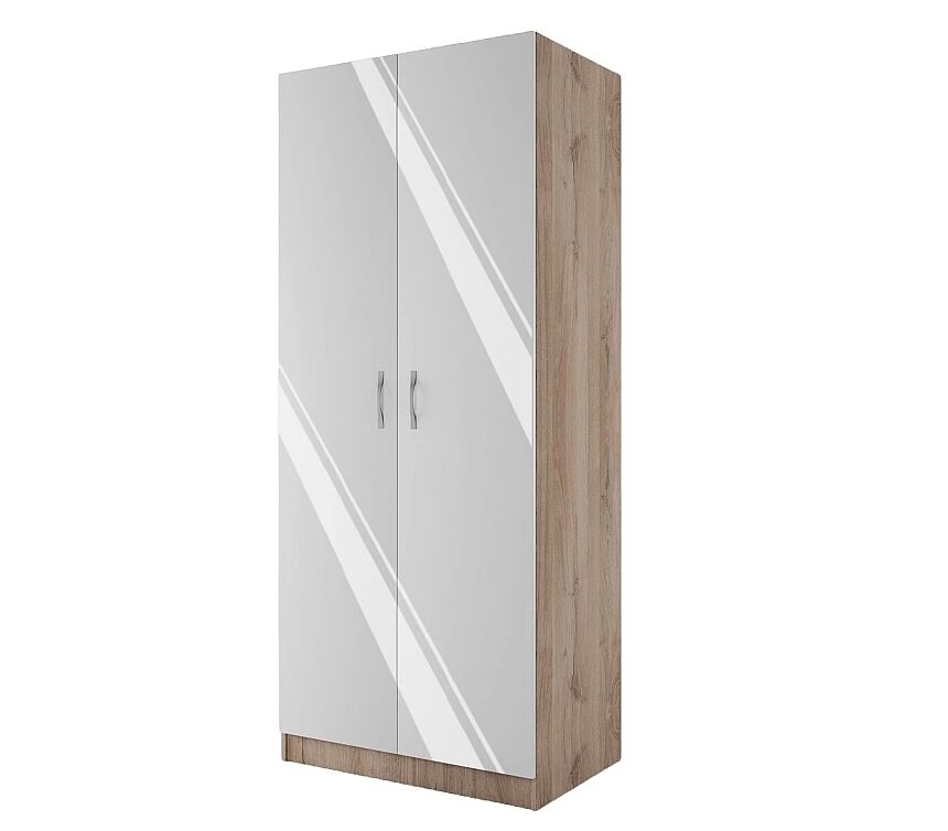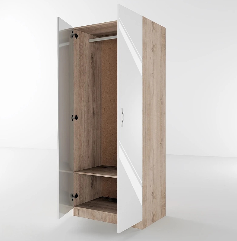 Двукрилен Гардероб СИТИ 1001 – бяло гланц/сонома арвен