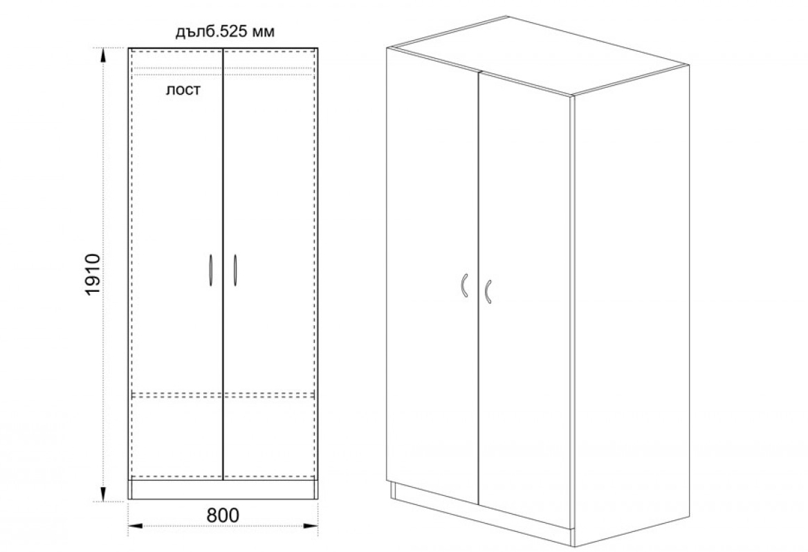 - Двукрилен гардероб с функционално вътрешно разпределение