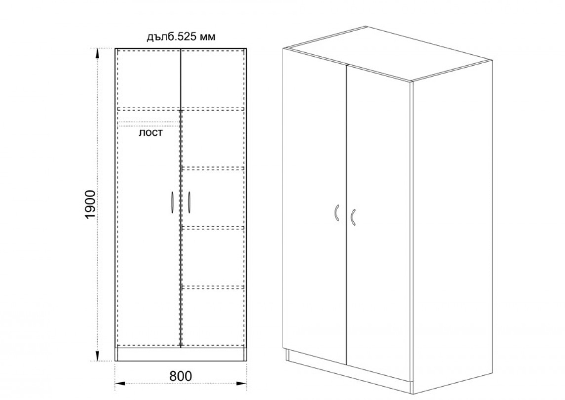 • Двукрилен гардероб с функционално вътрешно разпределение