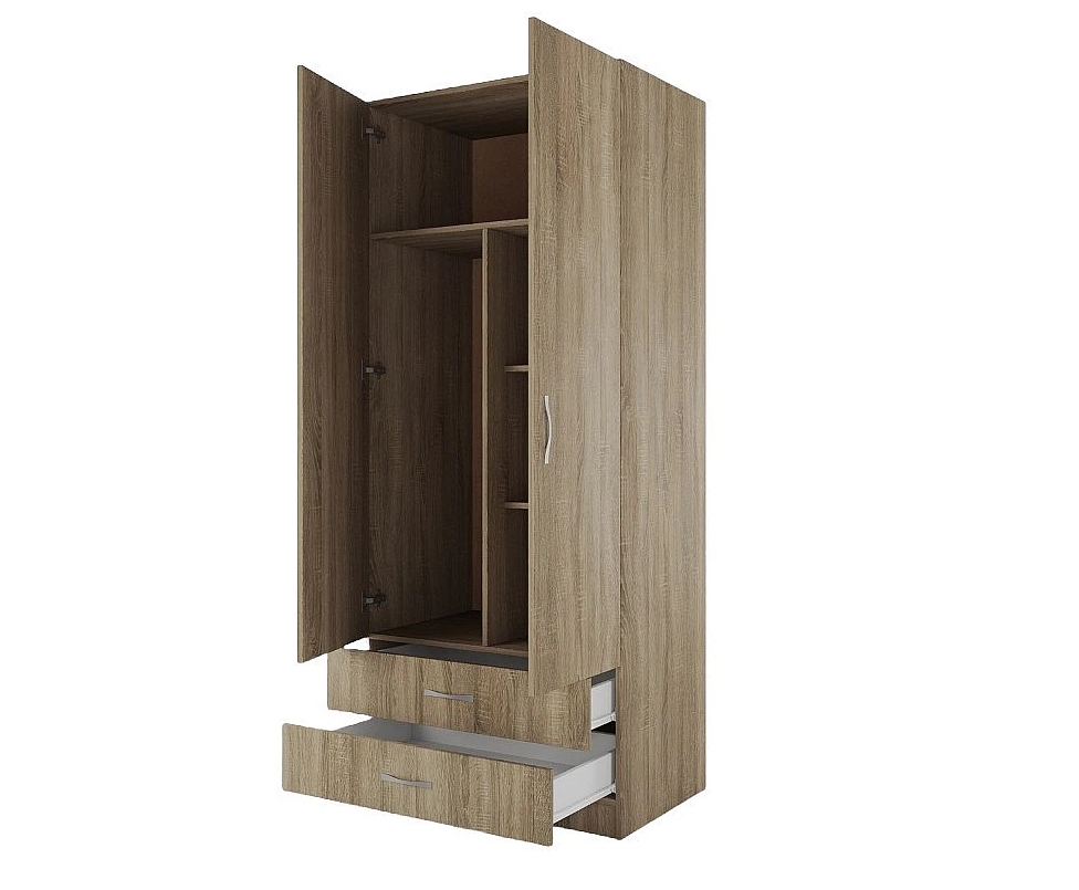 Двукрилен гардероб СИТИ 1008 с чекмеджета – сонома тъмна