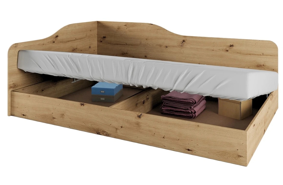 Размери: ш/в/д 192/71/122 см За еднолицев матрак: 120/190 см Цвят: дъб артисан Материал: ЛПДЧ 16мм (108,39 €) (207,07 €) Price range: 212,00 лв. (108,39 €) through 405,00 лв. (207,07 €) Безплатна доставка За град Пловдив при поръчки над 200лв. Изпълнява се до 7 дни след наличност на артикулите от поръчката. За област Пловдив при поръчка над 1500лв. Изпълнява се до 7 дни след наличност на артикулите от поръчката.(не се отнася за стоки на промоция). До всяка точка на България при поръчка над 3000лв.(не се отнася за стоки на промоция). Изпълнява се до 7 дни след наличност на артикулите от поръчката. Доставка Стандартната доставка е 1,20лв. на километър за цялата страна, като клиента заплаща само в едната посока. Цената е в сила когато поръчката не отговаря на условията за безплатна доставка описани по-долу. Доставка по куриер За точна цена за вашата доставка може да се обадите на телефон: 0885 15 05 13 !