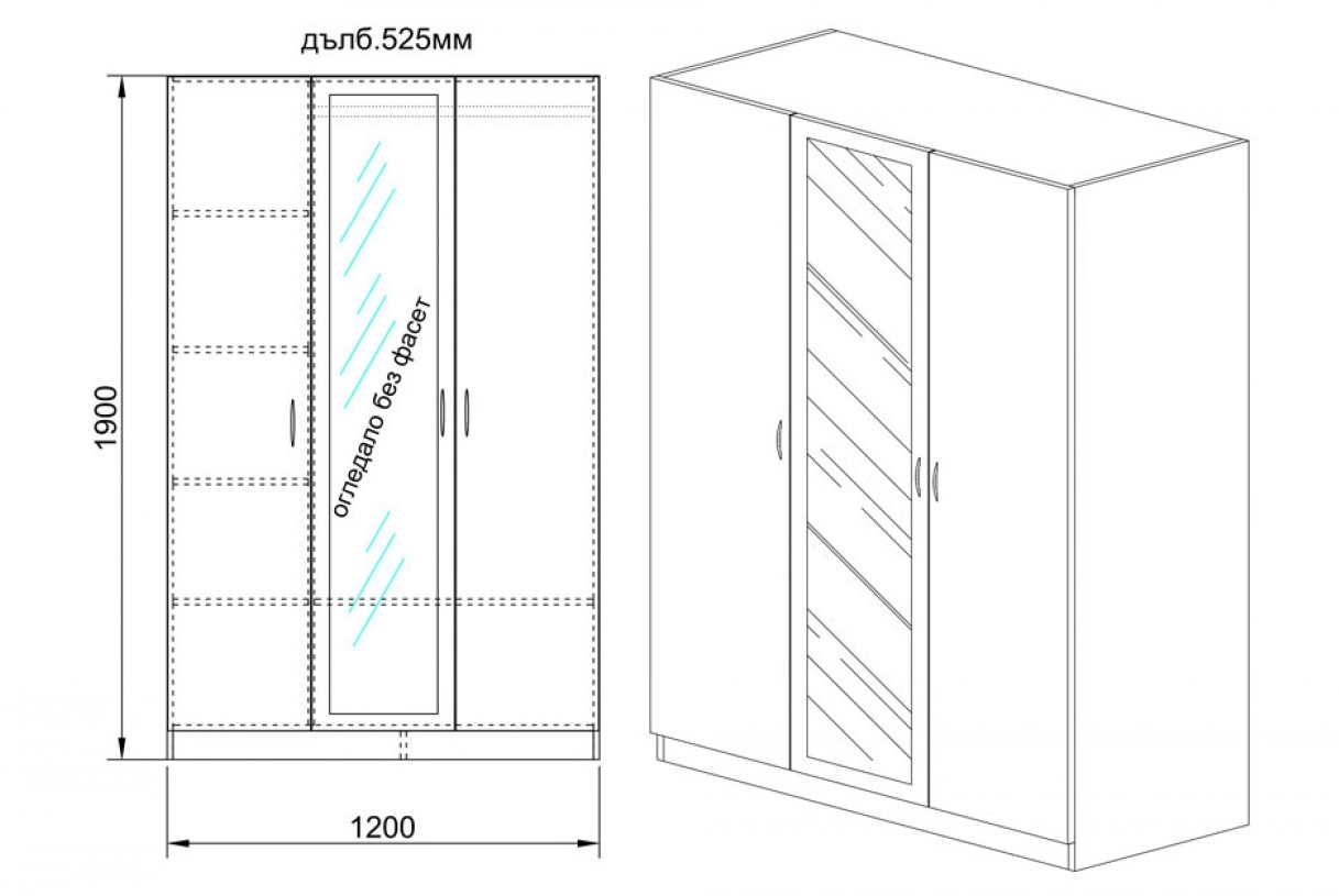 - Трикрилен гардероб с функционално вътрешно разпределение