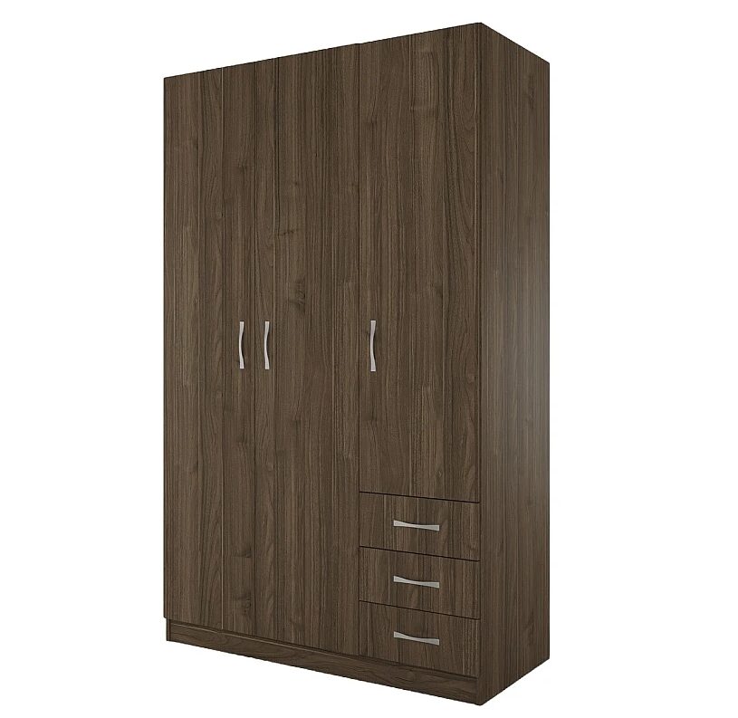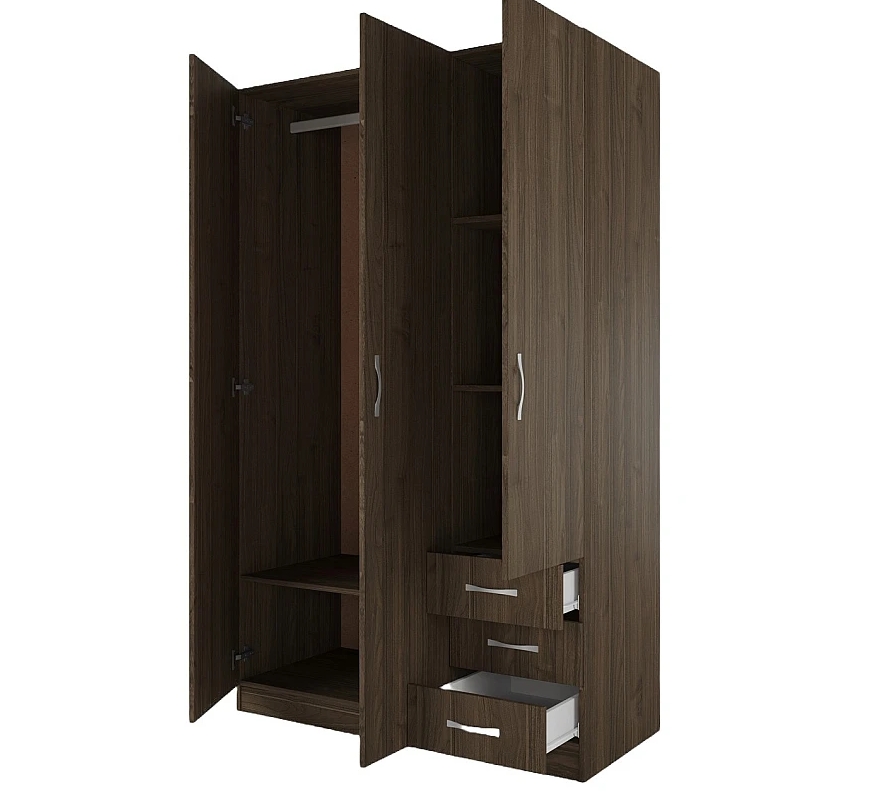 Трикрилен гардероб СИТИ 1028 с чекмеджета – орех адмирал