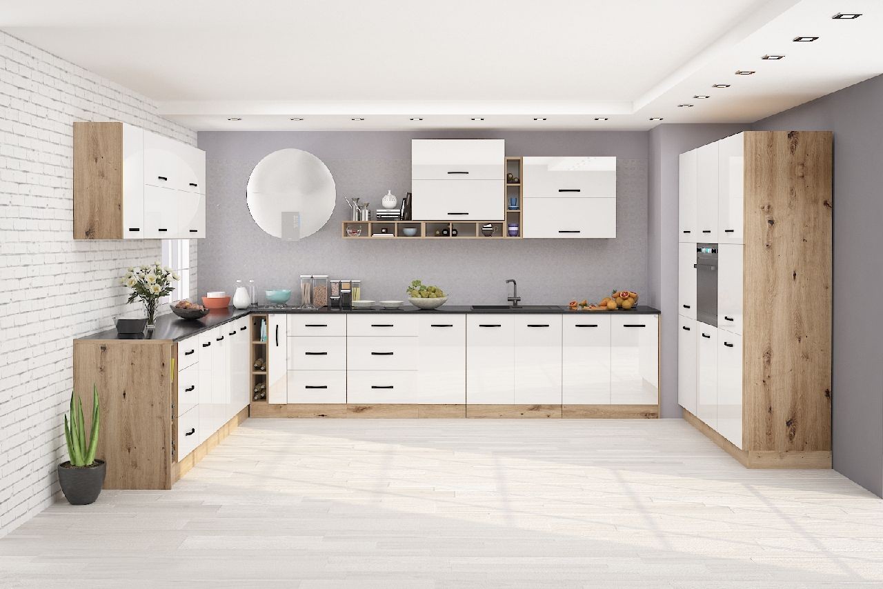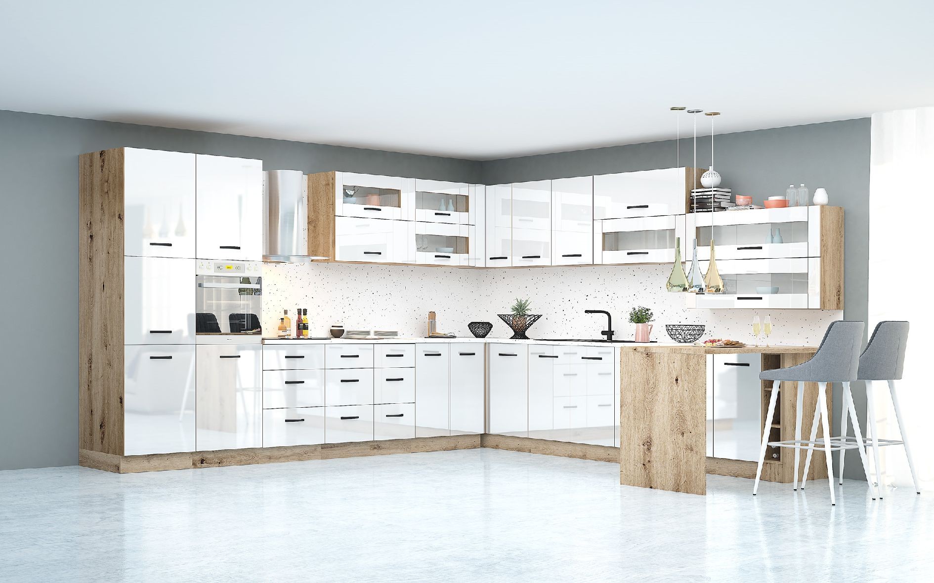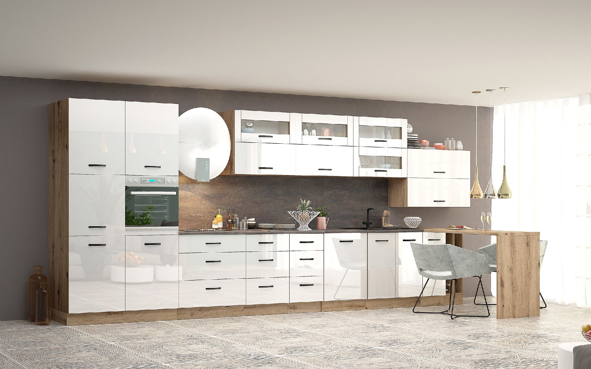 Цвят: корпус – дъб артизан; вратички МДФ 18мм бяло огледален гланц
