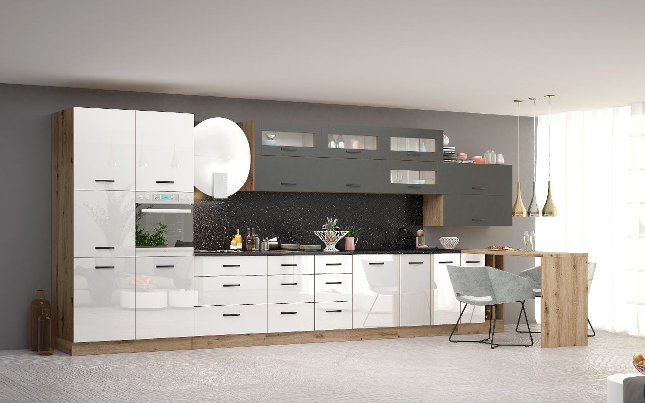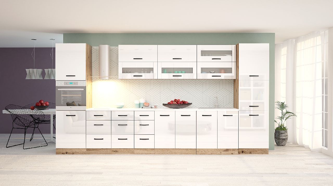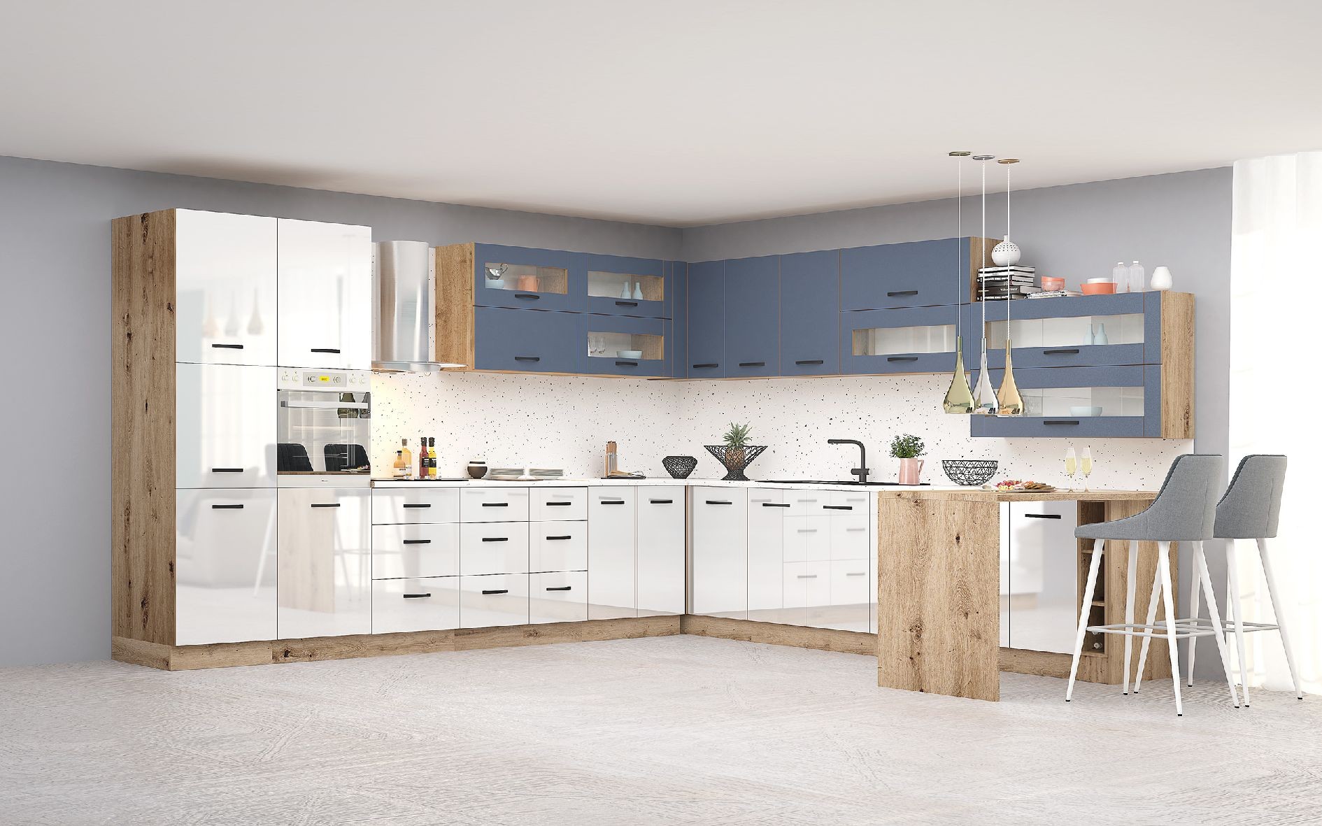 Цвят: корпус – дъб артизан; вратички МДФ 18мм бяло огледален гланц
