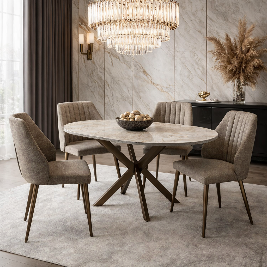 Трапезна маса DOBOK – разтегателна -сив мрамор/бронз