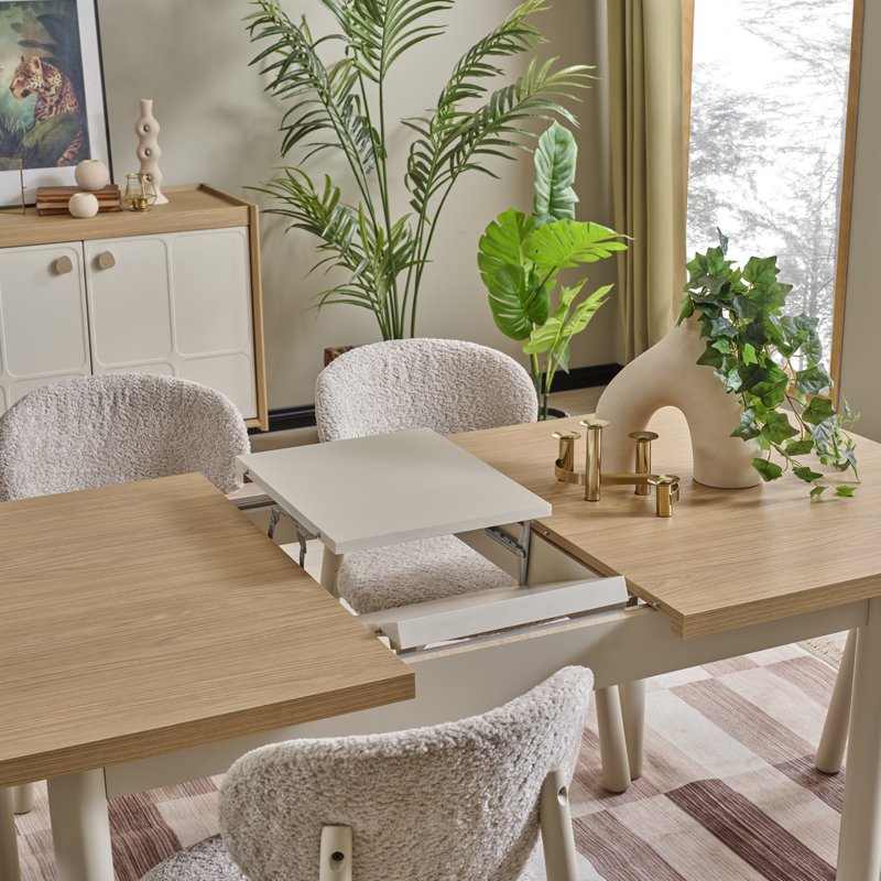 • Разтегателна трапезна маса LIVIA съчетава стилна визия и практичност, подходяща за модерния дом.