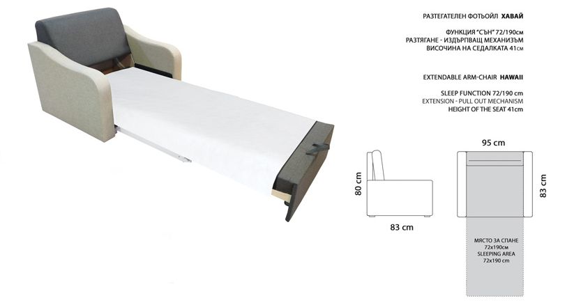 Разтегателен фотьойл Хавай – туист крем/туист сиво