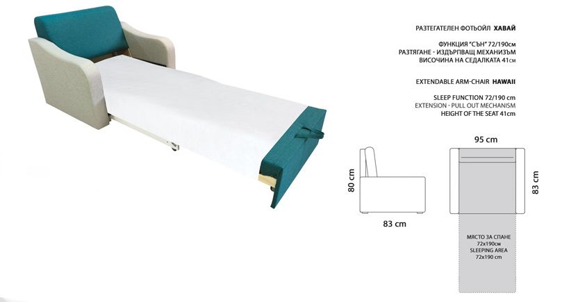 Разтегателен фотьойл Хавай – туист крем/ туист петрол