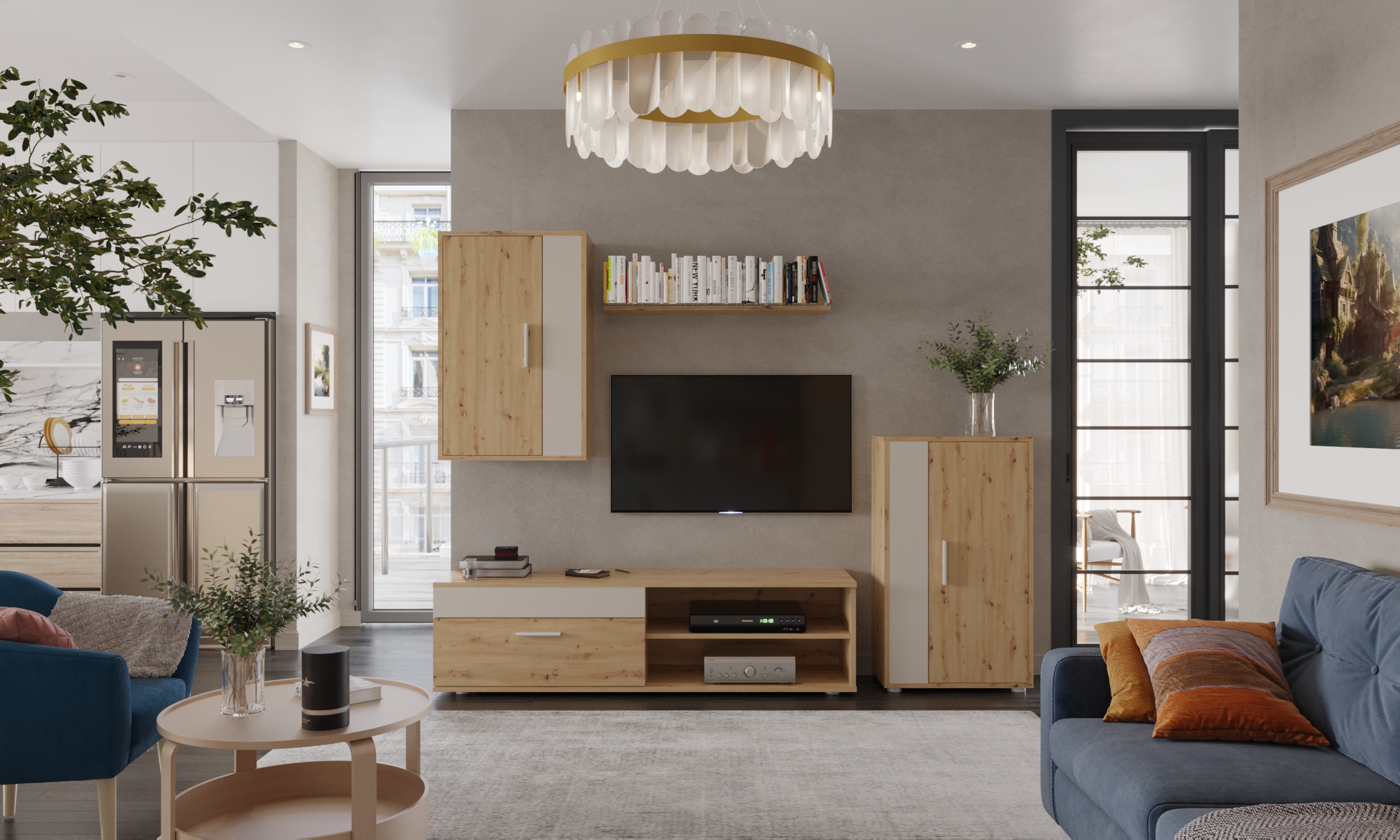- Здрава и надеждна изработка – Изработена от качествено ПДЧ с устойчиви механизми за дълготрайна употреба.
