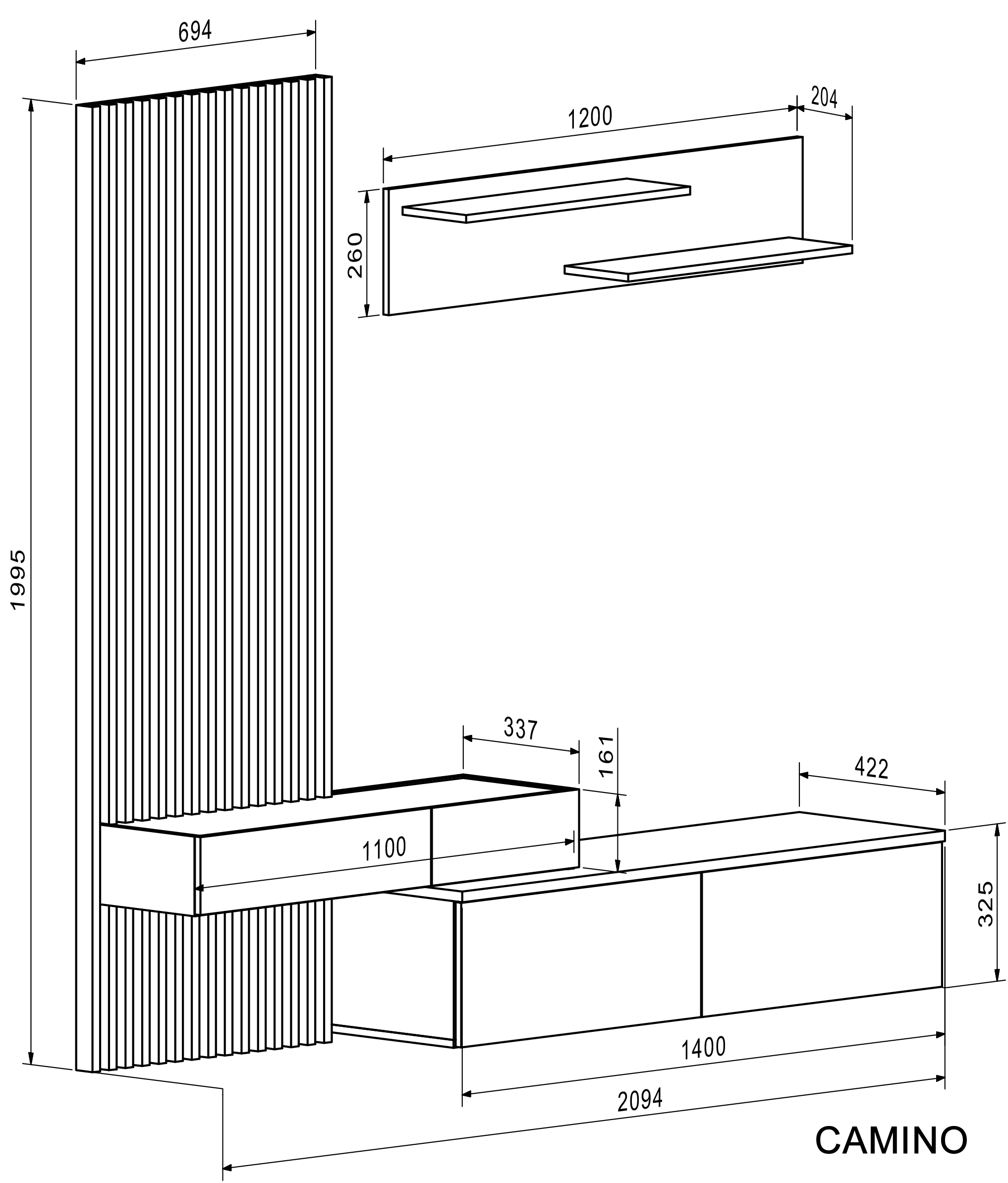 Секция CAMINO – дъб артизан/черно