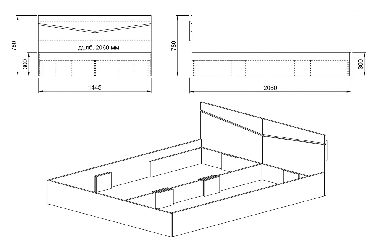 Размери: ш/в/д 144.5/78/206 см За матрак: 140/200 см Цвят: сонома арвен/ бяло гланц; сонома тъмна; орех адмирал; дъб артисан; лате/мока Материал: ЛПДЧ 16мм (136,51 €) (141,63 €) Price range: 267,00 лв. (136,51 €) through 277,00 лв. (141,63 €) Безплатна доставка За град Пловдив при поръчки над 200лв. Изпълнява се до 7 дни след наличност на артикулите от поръчката. За област Пловдив при поръчка над 1500лв. Изпълнява се до 7 дни след наличност на артикулите от поръчката.(не се отнася за стоки на промоция). До всяка точка на България при поръчка над 3000лв.(не се отнася за стоки на промоция). Изпълнява се до 7 дни след наличност на артикулите от поръчката. Доставка Стандартната доставка е 1,20лв. на километър за цялата страна, като клиента заплаща само в едната посока. Цената е в сила когато поръчката не отговаря на условията за безплатна доставка описани по-долу. Доставка по куриер За точна цена за вашата доставка може да се обадите на телефон: 0885 15 05 13 !