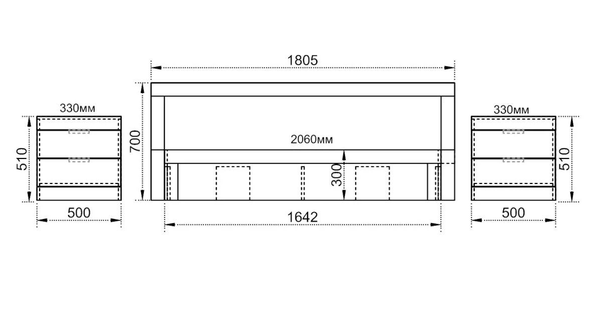 - нощно шкафче 2 бр. – ш/в/д 50/51/35 см