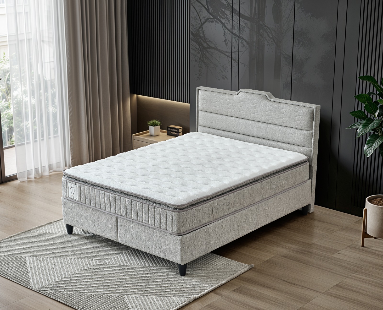 - Комфортен матрак с покет пружини – Осигурява равномерна опора на тялото и добра устойчивост при натоварване.